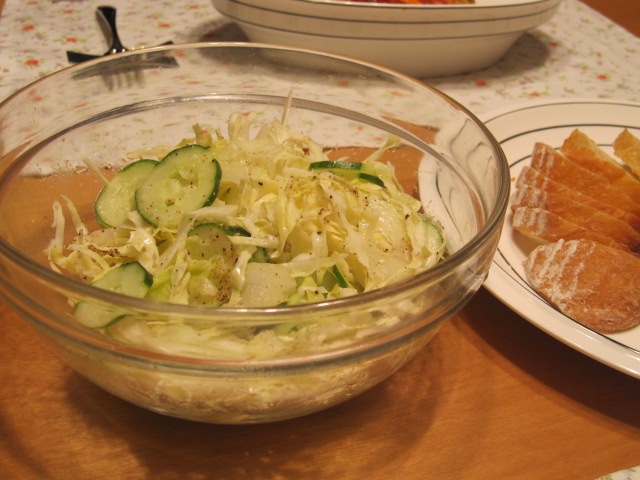 この日も買い物へ行かなかったので、冷蔵庫の野菜をかき集めてサラダ。