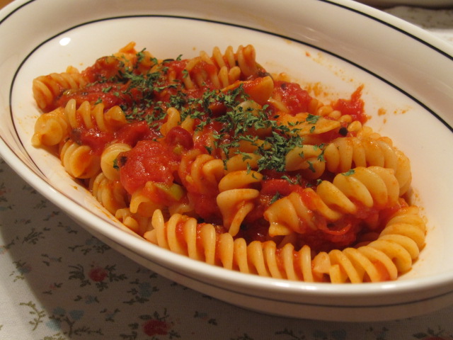 で、パスタは辛くて酸っぱいヤツ、とオーダー。