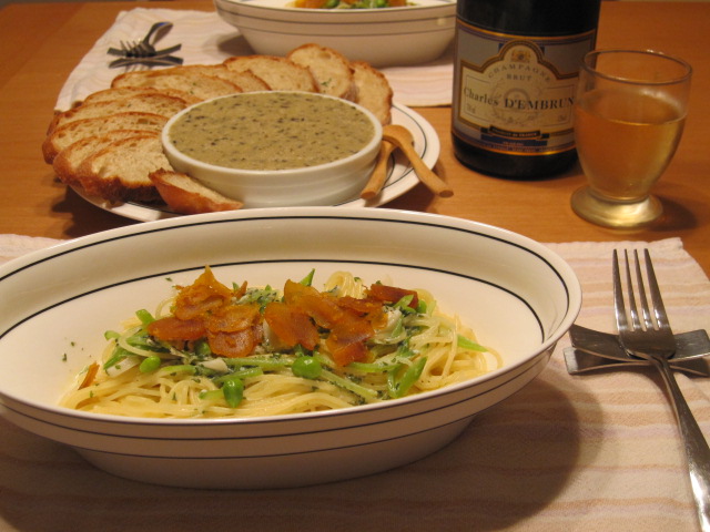 カンパに茄子のペースト、そしてシャンパン。
