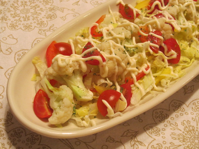 サラダは冷蔵庫のありもの。