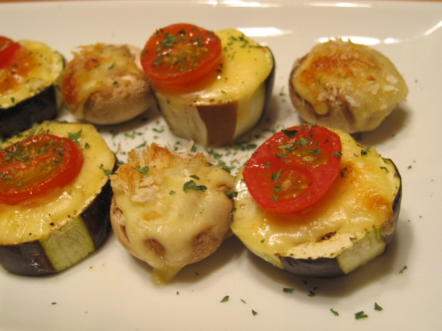 マッシュルームにはチーズとパン粉をのせて。