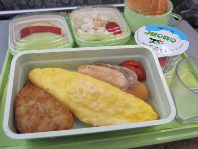 帰りの機内食はオムレツとビーフン。