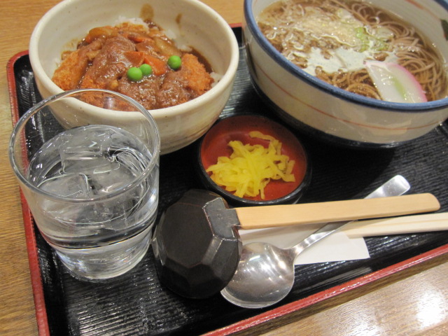 お蕎麦屋さんに入り、カツカレーセット1人前を2人で食べました。