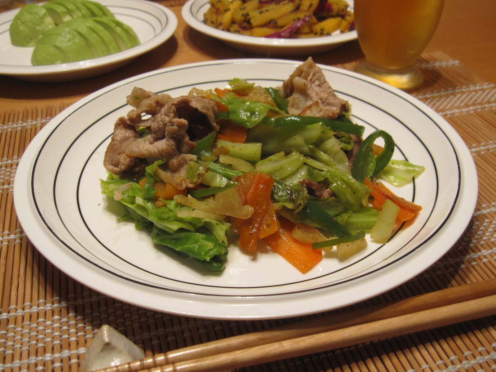 モリモリ野菜炒め。味付けは牛肉ダシダとたっぷり胡椒。