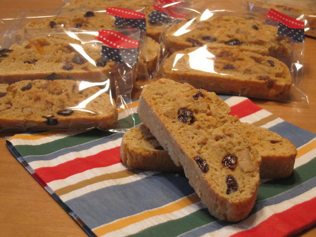 タッパーをお返しするべく、お礼に焼いたビスコッティ。