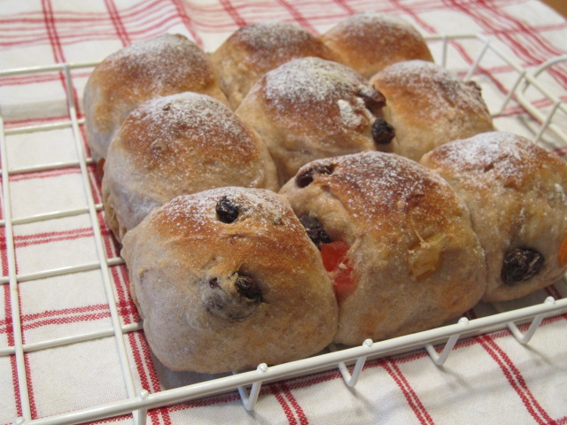 ドライフルーツとクルミをたっぷり入れた全粒粉のパン。