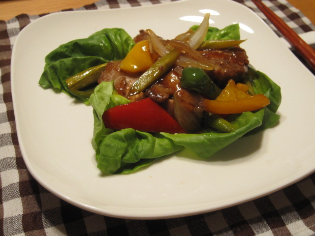 冷凍庫で発掘した煮豚を解凍して、黒酢豚にしました。