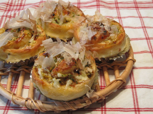パンの上で鰹節踊ってます。
