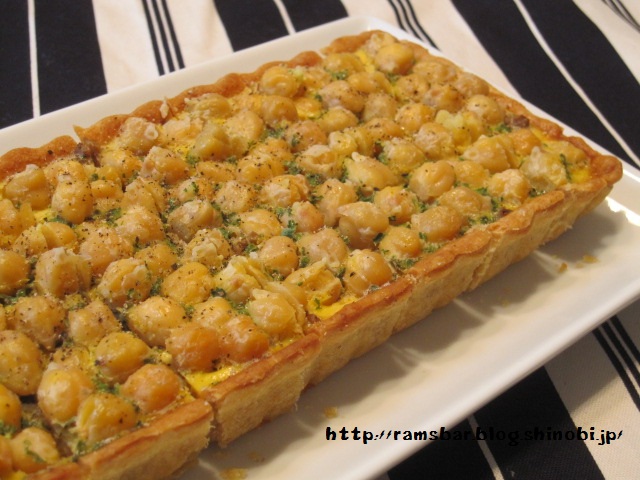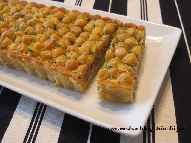 ちょっとスパイシーでひよこ豆の見た目もかわいい、おつまみキッシュです。