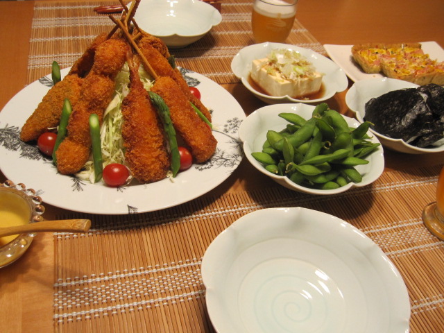 枝豆・温奴・おにぎり・キッシュの残りで済ませました。
