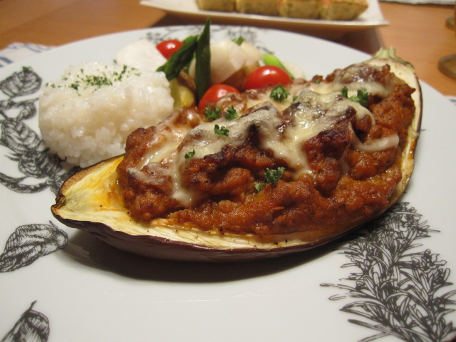 茄子に入れてチーズかけてトースターでチン。