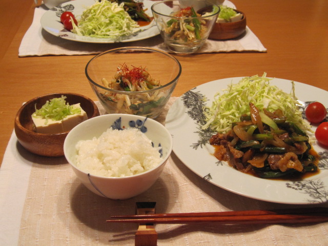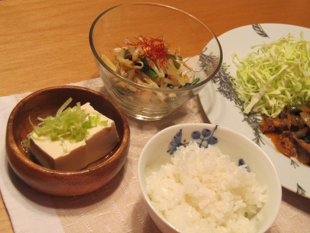 牛切り落とし肉で炒めるだけの簡単焼肉定食。