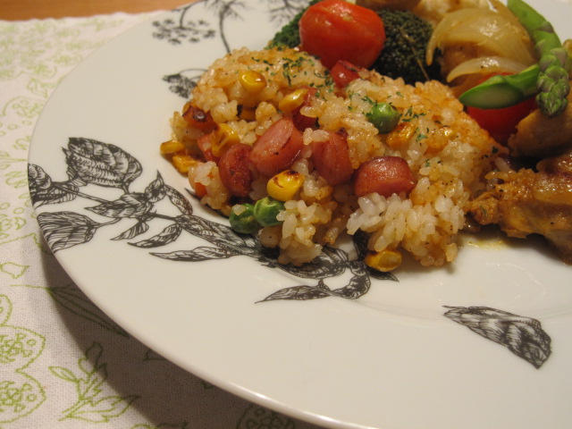 ジャンバラヤ風チャーハンと色々野菜でワンプレートにして