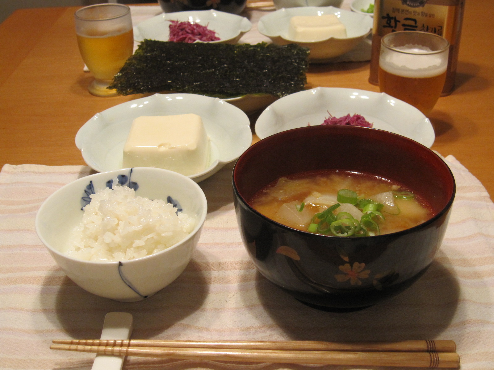 冷奴は韓国で買ってきた高級胡麻油で。