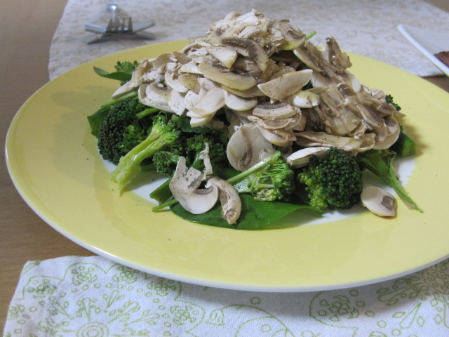 マッシュルーム6個を大胆にもりもりのせたサラダは