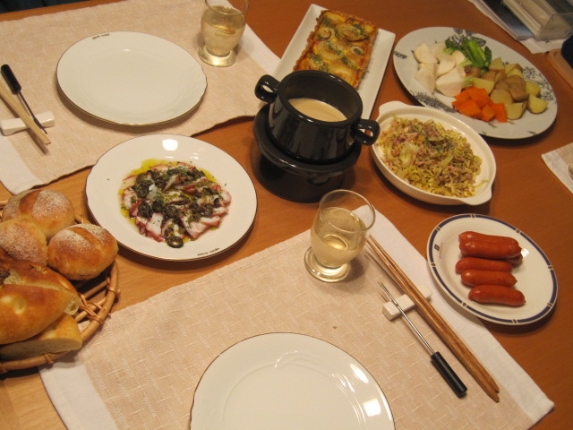 ざざっと並べてスパークリングワイン開けて乾杯。