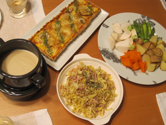 作って置いたキッシュ・キャベツのハニーマスタードサラダ・