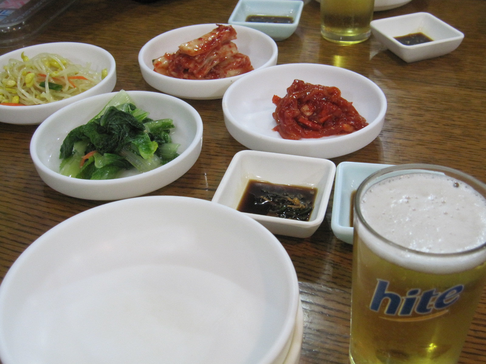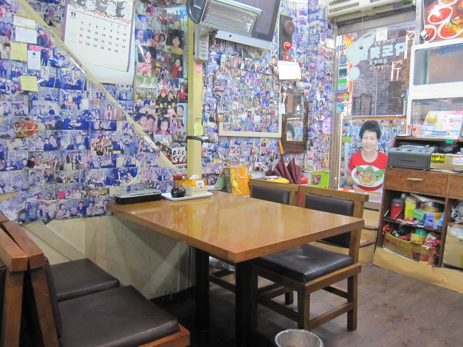 ホテルで傘を借り、明洞の辺りの細い路地の怪しいお店に入りました。