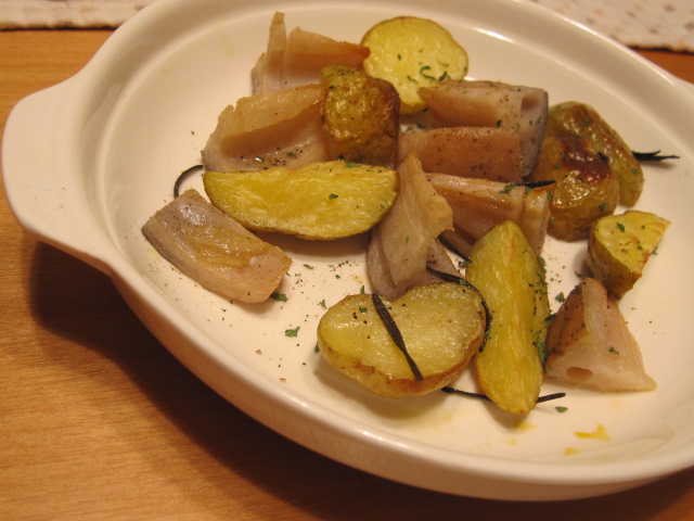 蓮根・長芋・人参・ほうれん草・高野豆腐の煮もの。