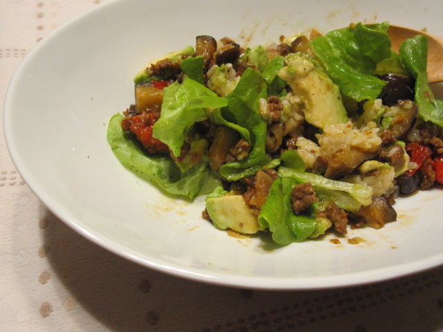 ごはん・アボカド・炒めたやつ・チーズを乗っければ完成。