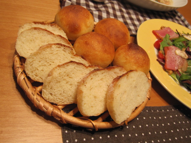 普通のまんまるパンとちょっと大きめに焼いたパン。