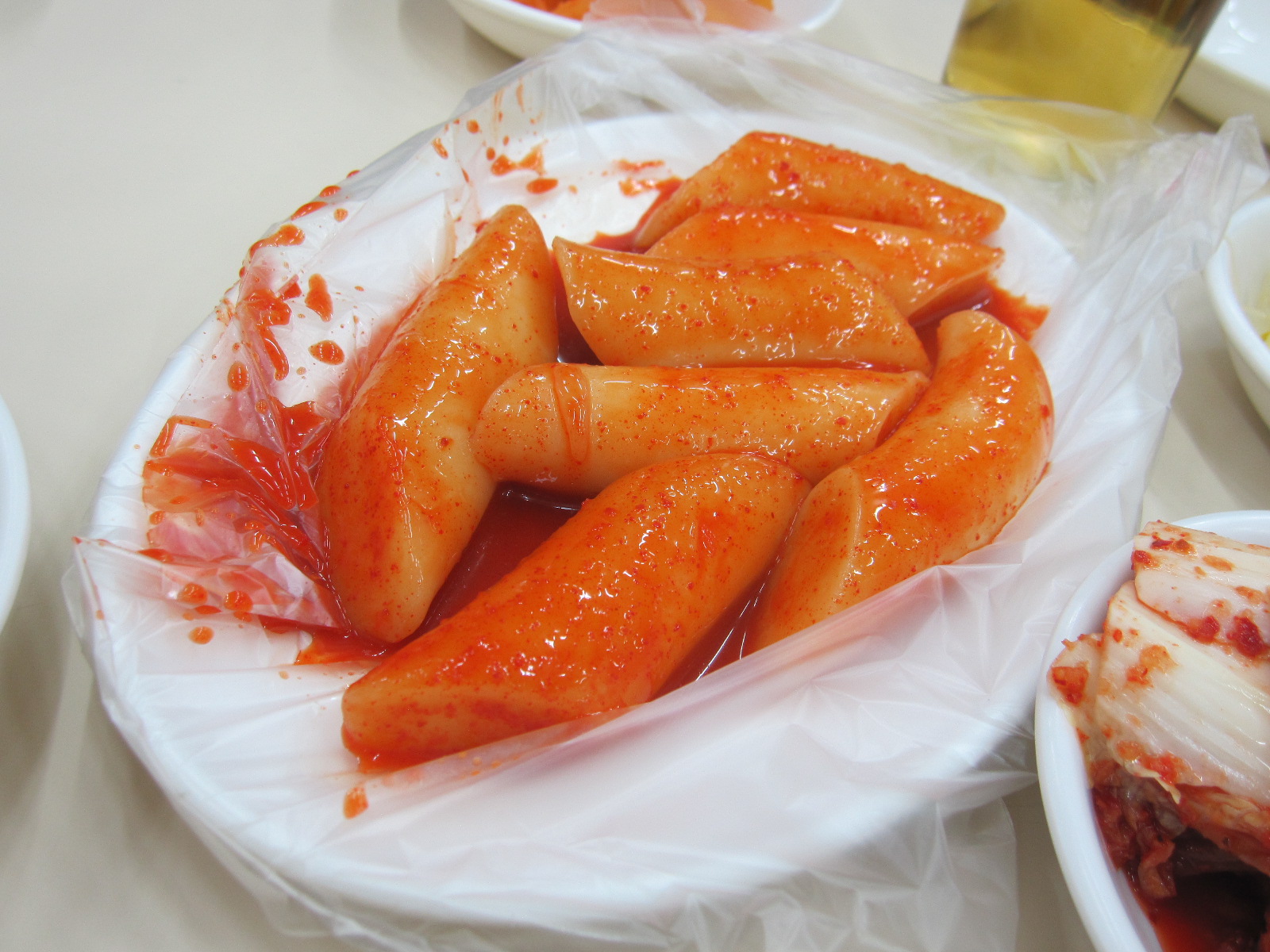 無料のキムチの他にトッポッキもサービスで出てきました。