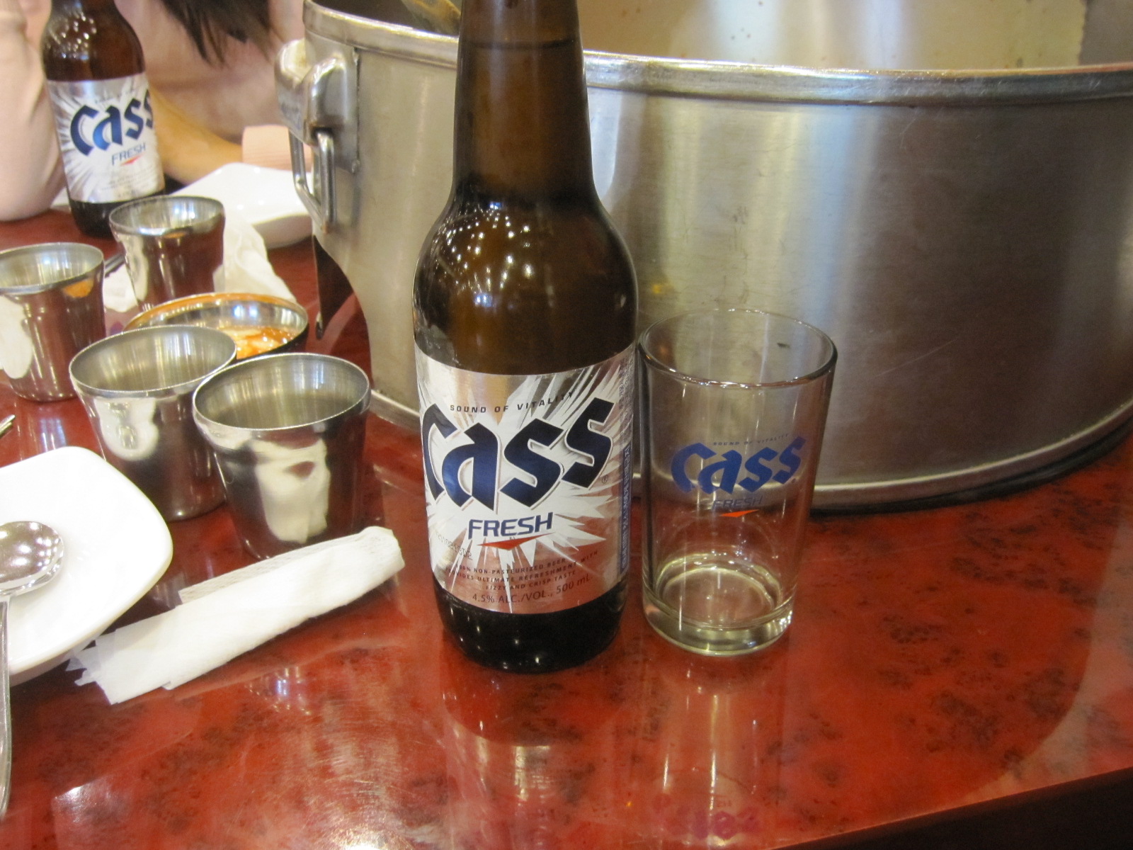 ひとり1本ずつ、手酌でビール飲みました。