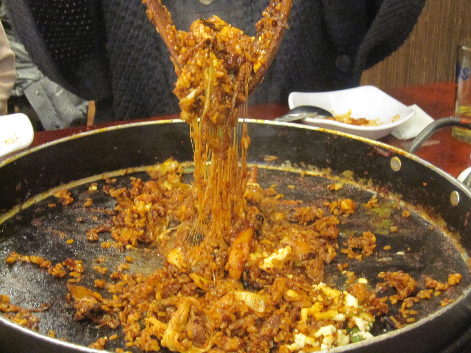具が半分くらい残った鉄板にごはんとチーズを入れて、