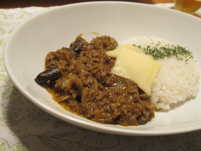 茄子と玉葱と挽肉だけのシンプルなカレー。