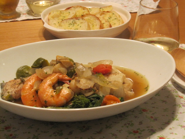 魚介は塩・胡椒の後粉をふって軽くソテー。