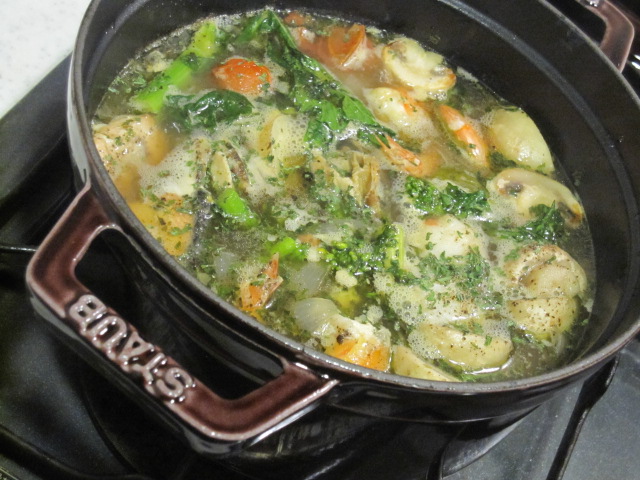 海老・帆立・タラ・鮭が3人前ずつ入った『寄せ鍋セット』。