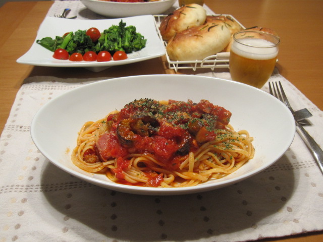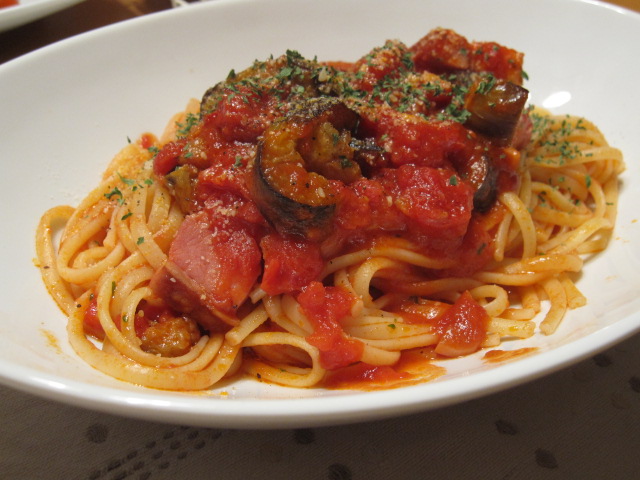 茄子とベーコンのトマトパスタ