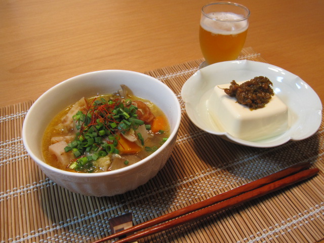 冷奴にのっかってるのは頂き物の唐辛子味噌。