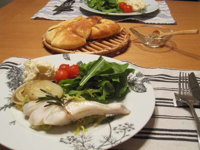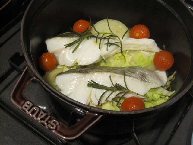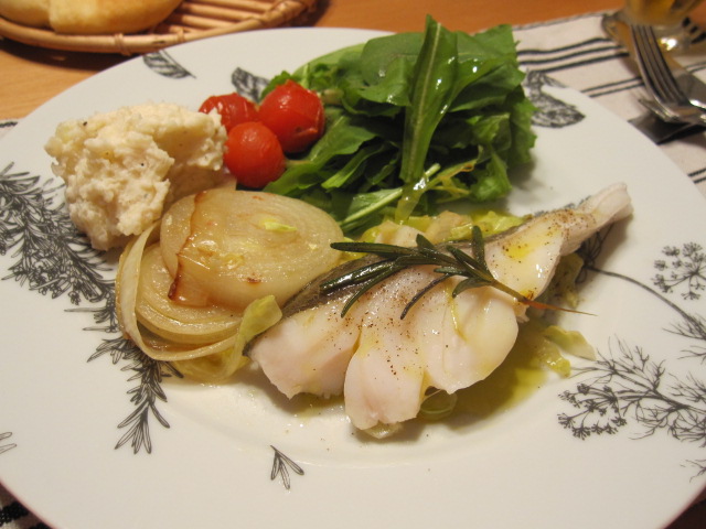オリーブ油を少量ふって、ローズマリーも一緒に蒸し焼き。