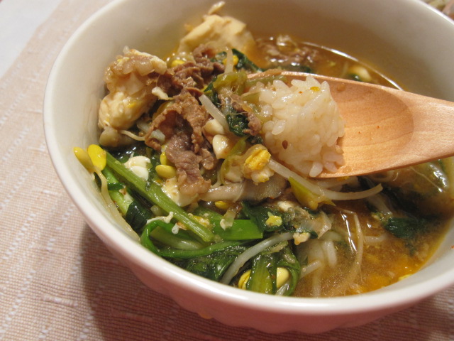 と言う訳で、ユッケジャン風の辛過ぎないスープ。