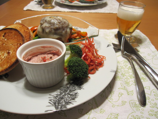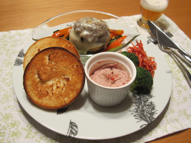 マッシュルームハンバーグ ほうれん草とパプリカソテー添え
