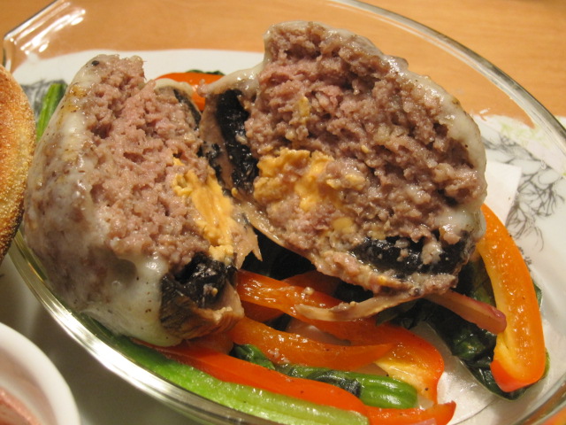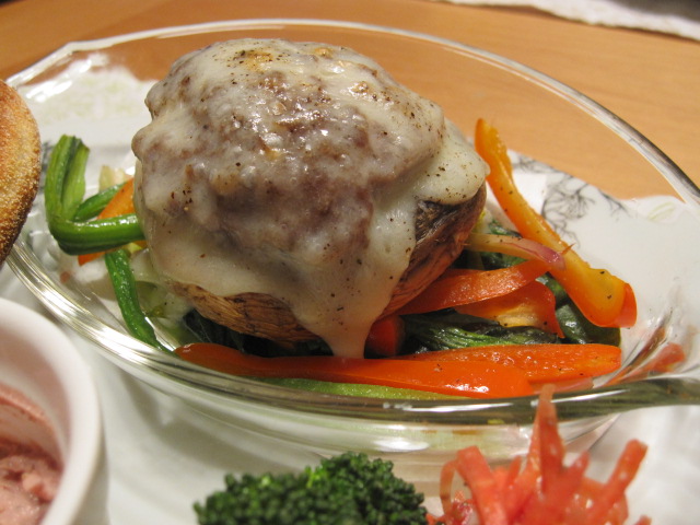 挽肉とチーズをのっけてやいたら、マッシュルームが見えなくなりました。