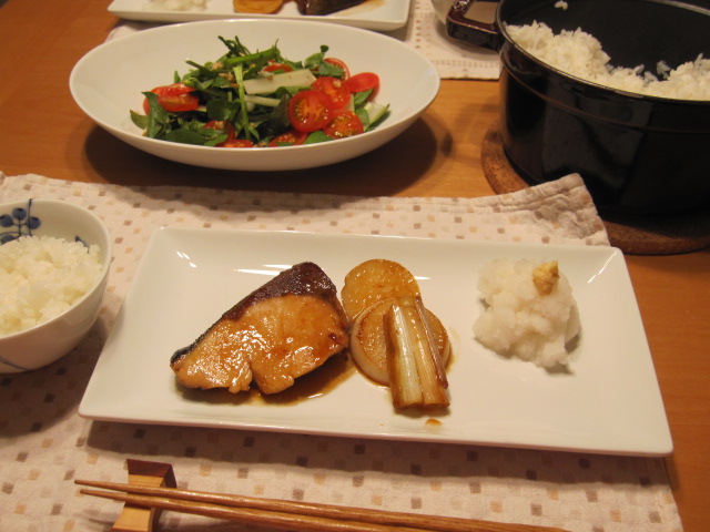 そんな訳で照り焼き。カブとネギ添え。