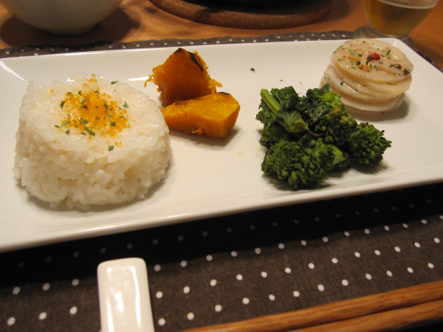 菜の花は下茹したものをアンチョビのっけてトースターでチン。
