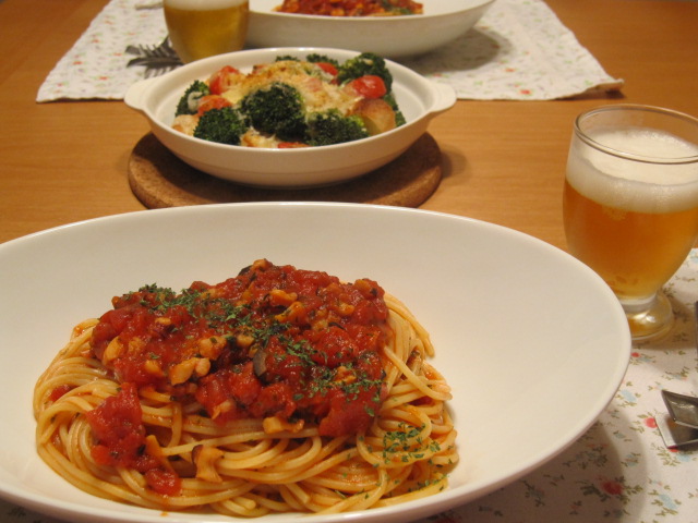 パスタは彼が作った方が美味しいので、私は滅多に作りません。