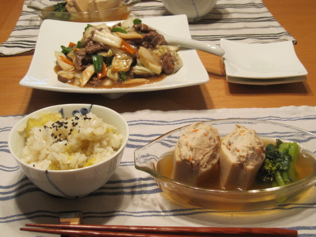 高野豆腐のつくね詰め