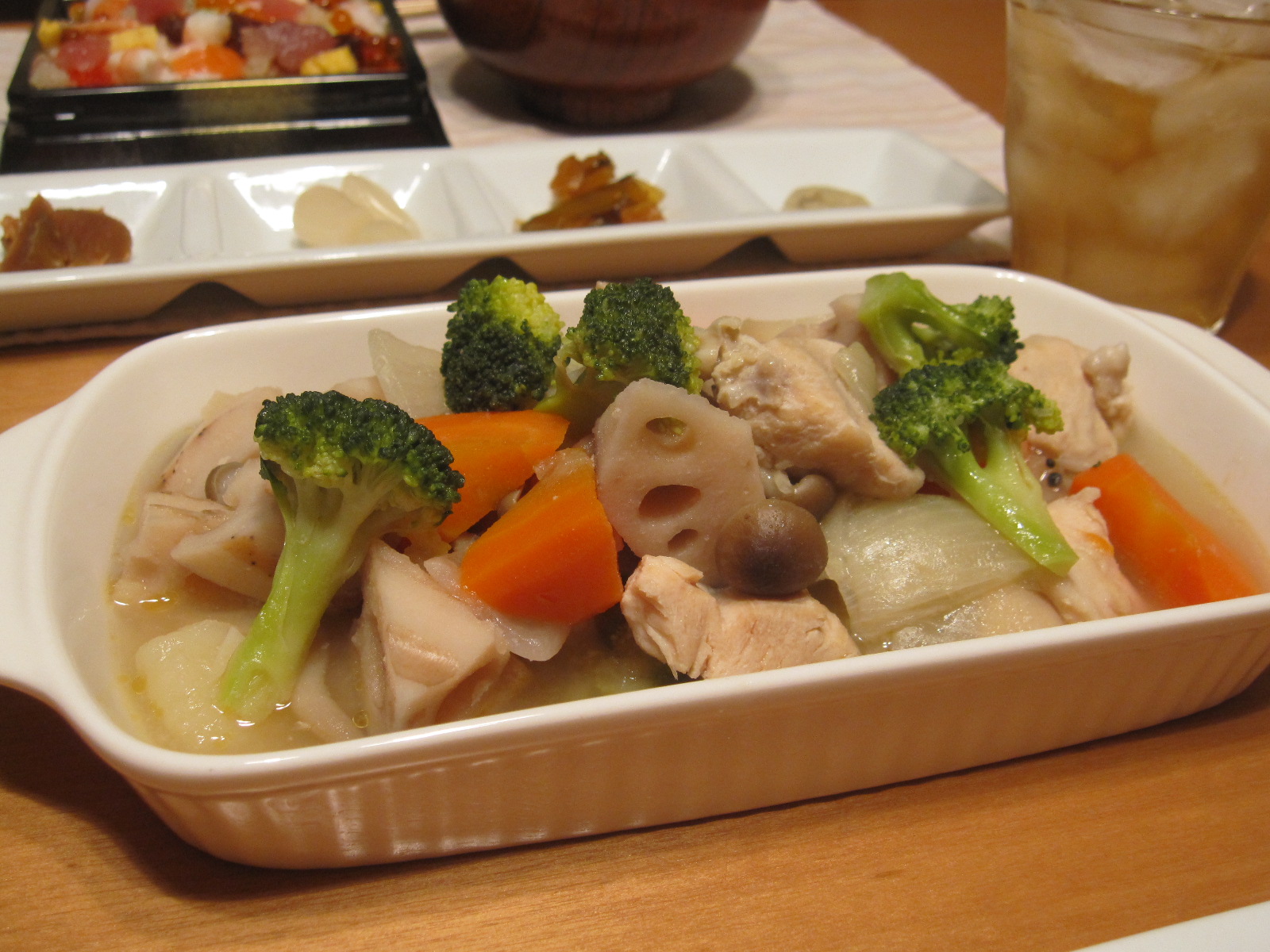 冷蔵庫にあった野菜で適当に作った煮物。