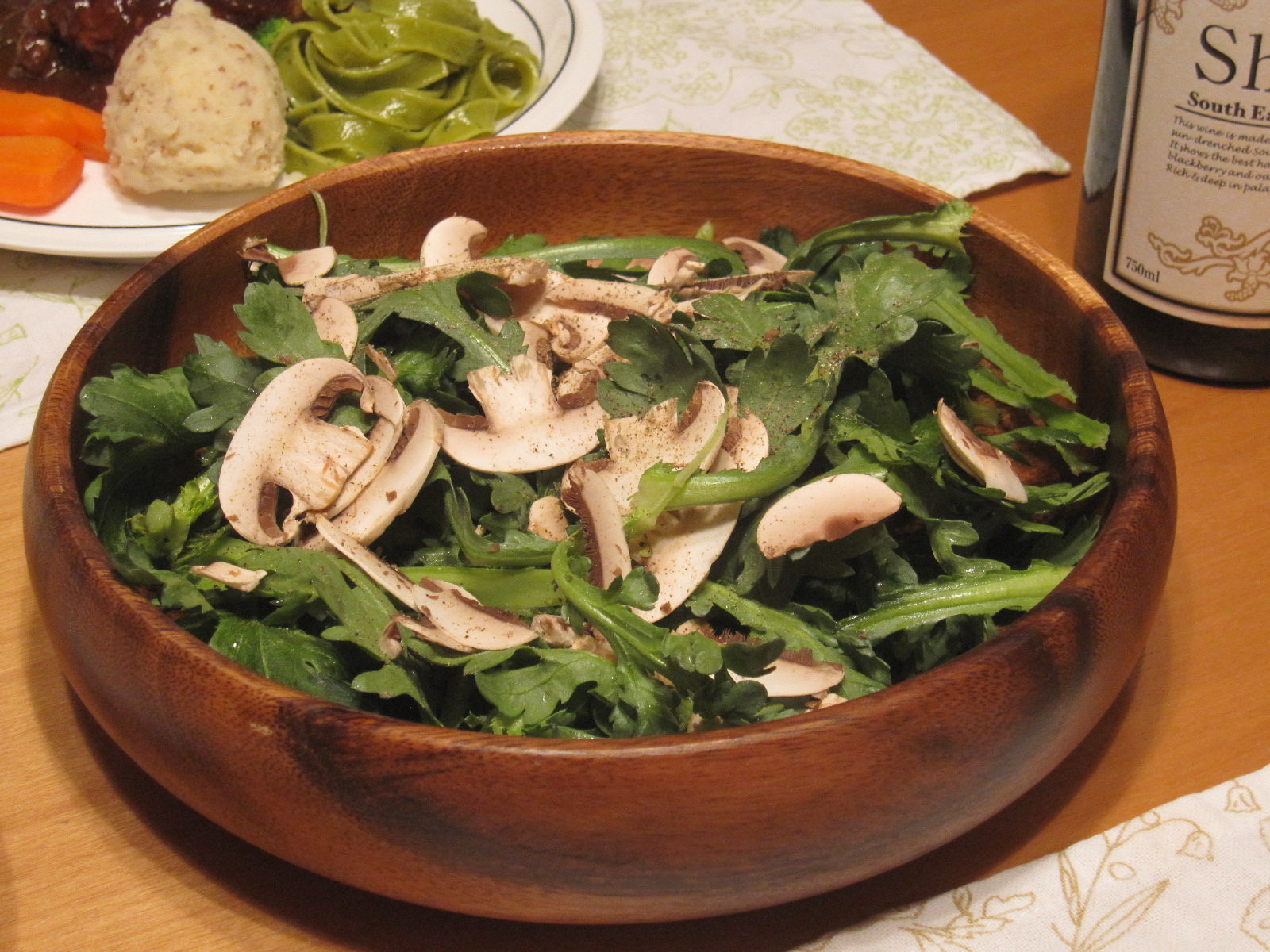 サラダは生春菊と生マッシュルーム。