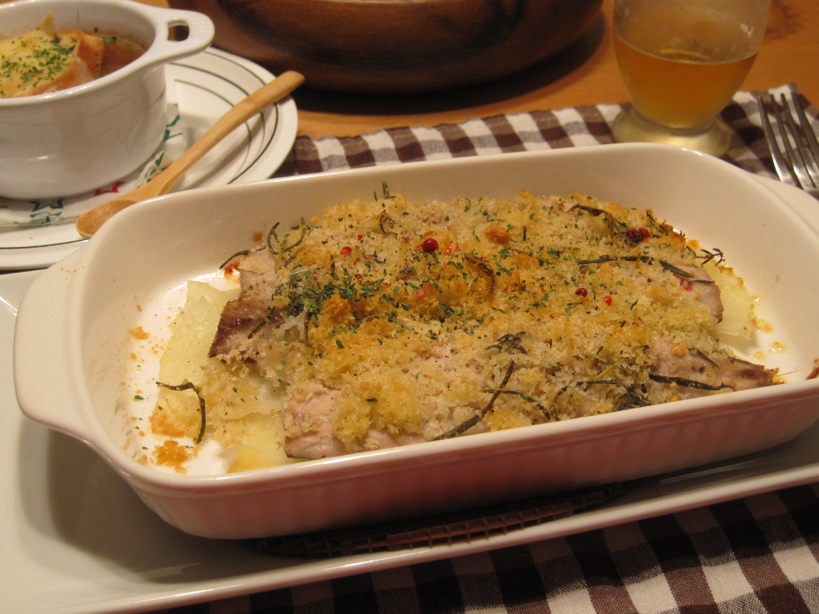 パン粉には冷蔵庫にあったタイムとローズマリーも入れました。