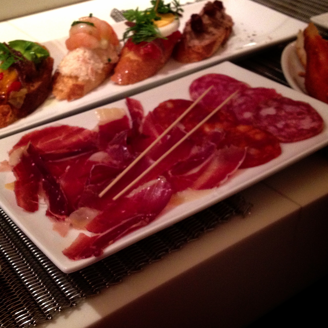 生ハムとサラミの盛り合わせ。