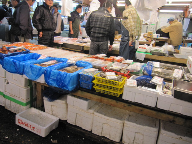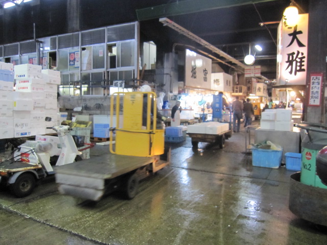 早朝ではないので、せりも既に終わっており、人もまばら。