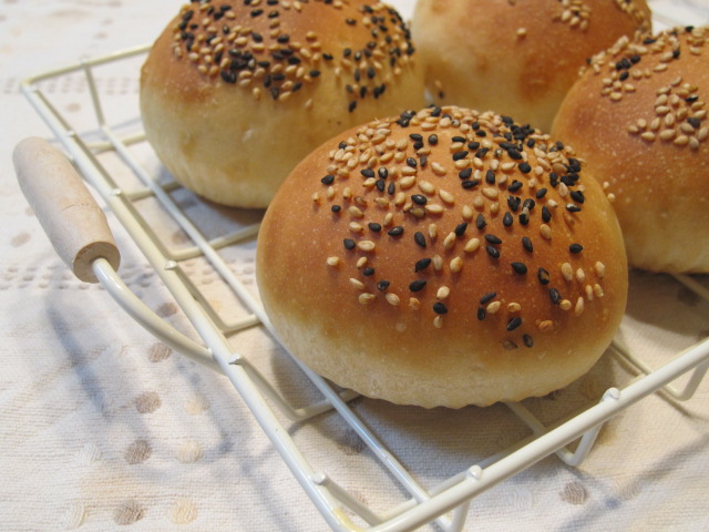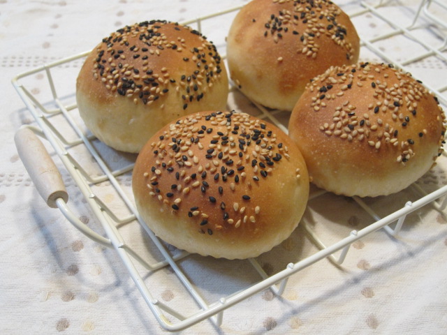 休日の朝食にバーガーにして食べよう、と焼いたパン。