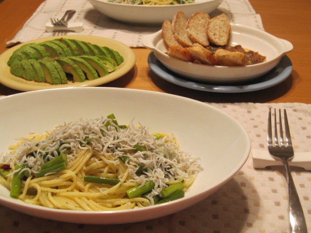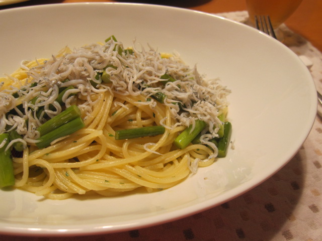 ペペロンチーノ風にして、仕上げにしらすをどばー。