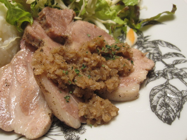 数日前に買ったロース塊肉をハーブソルトに漬けこんで3日。