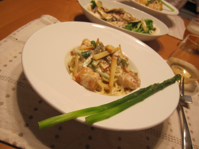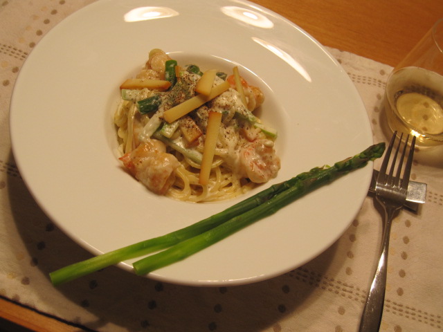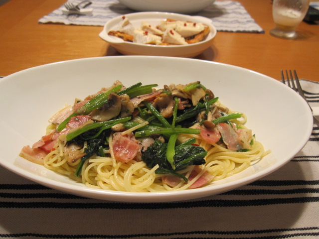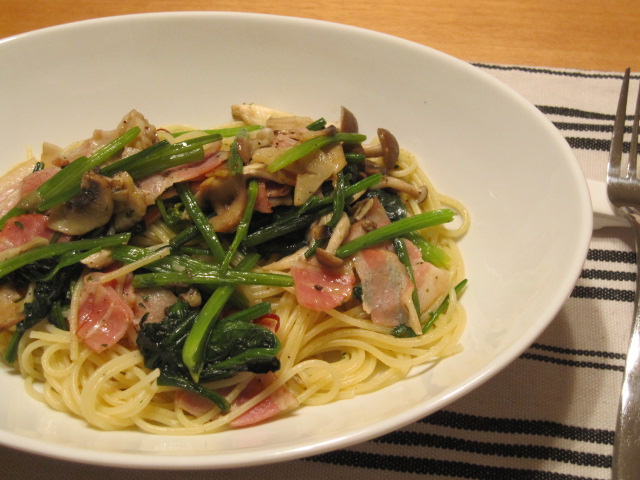 ベーコン・しめじ・ほうれん草のオイルパスタ
